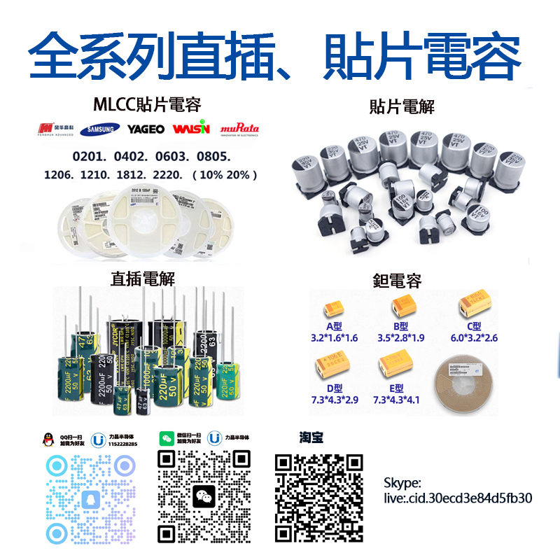 关键词:三環集團,韓國三星(SAMSUNG),台灣國巨(yageo),日本村田(muRata),太誘,天二,TDK,紅寶石(rubycon),禾伸堂(HEC),風華高科,基美(kemet),AVX鉭電容,台灣立隆(LELON),台灣華新科(WALSIN),CBB電容,車規電容,貼片固態電解電容,電容器,電子元器件